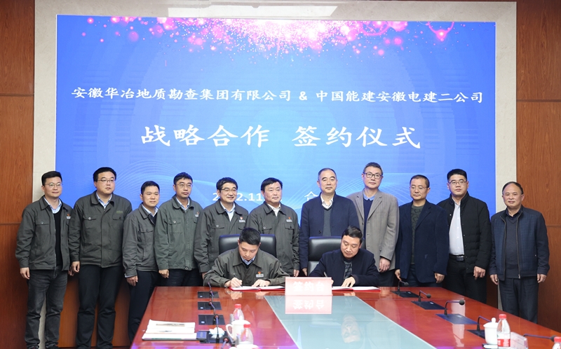 11月22日,安徽華冶地質(zhì)勘查集團(tuán)有限公司與中國(guó)能建安徽電建二公司在中國(guó)能建安徽電建二公司會(huì)議室舉行“戰(zhàn)略合作框架協(xié)議”簽約儀式。中國(guó)能建安徽電建二公司黨委書記、董事長(zhǎng)陳建明,華冶地勘集團(tuán)黨委書記、董事長(zhǎng)金其軍共同出席簽約儀式。中國(guó)能建安徽電建二公司總工程師柯良鋒與華冶地勘集團(tuán)副總經(jīng)理黃太松代表雙方簽約。