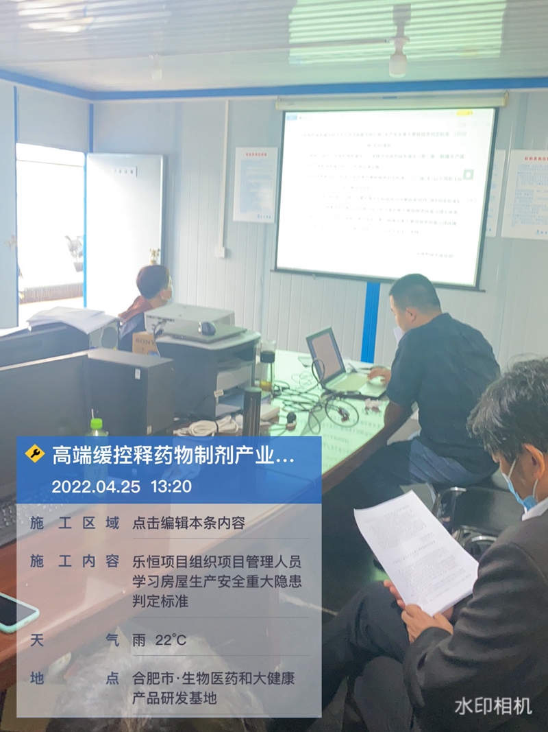 會后,在總承包項目“高端緩控釋藥物制劑產業(yè)化基地工程”施工現(xiàn)場,組織項目部管理人員集中學習了《判定標準》。